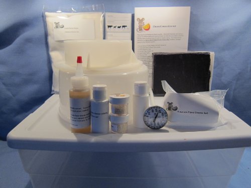 1 Professional 4# Tome Mold and Lid, 1 Large Dial, Easy to Read Cheese, Thermometer, Cheese ripening cave, 8 oz. non-iodized flake cheese salt, 2 yards Butter Muslin, 2 Plastic Ripening Mats, 5 Doses Mesophilic Culture, 5 Doses Thermophilic Culture, 1 ounce Lipase, 1 ounce Annatto Coloring, 2 ounces liquid rennet, 1 pound Deep Purple Cheese Wax, 10 professional cheese wrappers and 10 professional cheese labels. Includes step by step instructions, pictures and recipes.